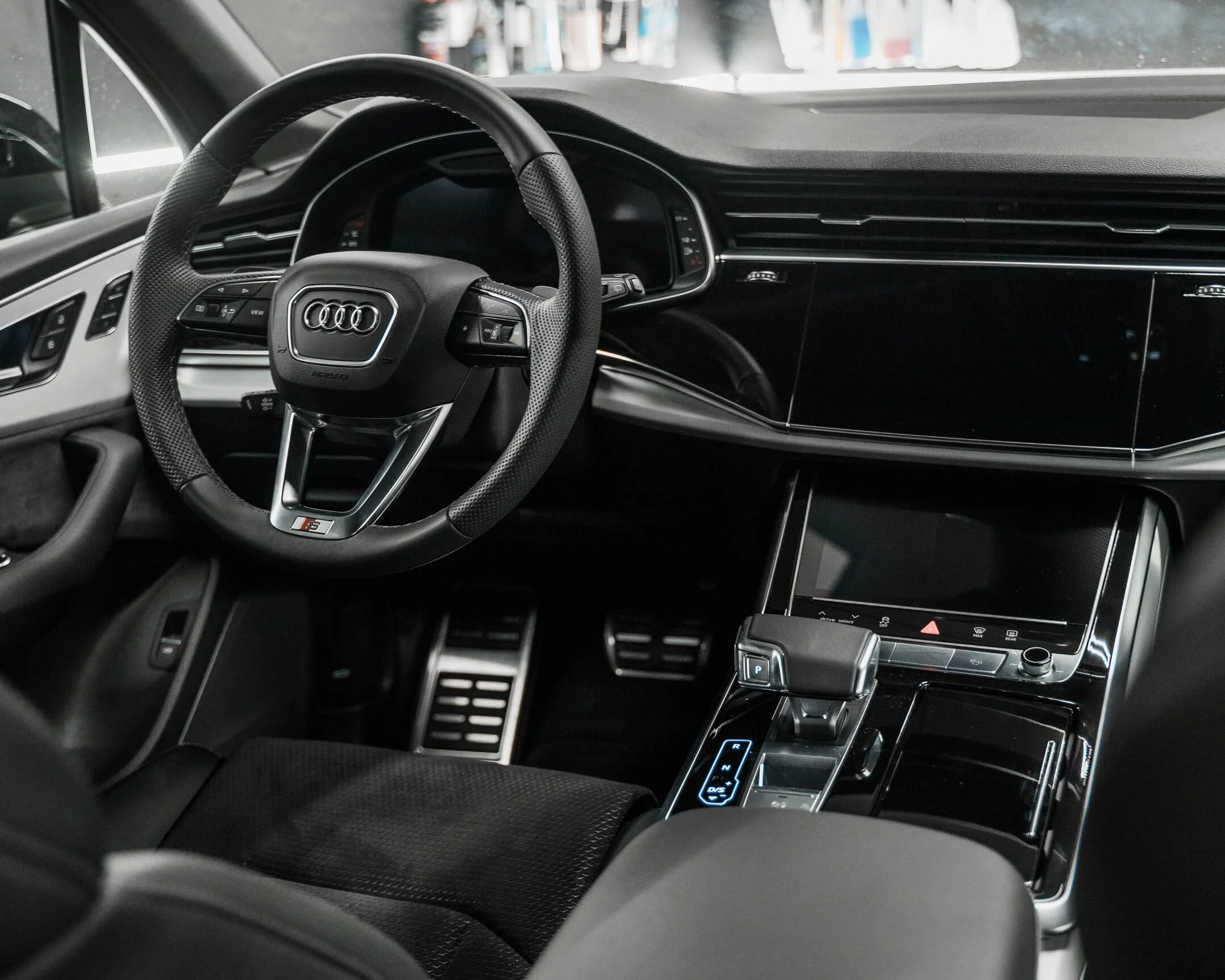 U vozu Audi Q7 jsme se zaměřili na důkladné vyčištění interiéru i exteriéru. Lak prošel strojním leštěním, které odstranilo jemné škrábance a zašednutí. Výsledkem je výrazně hlubší lesk a celkově svěží vzhled vozu.